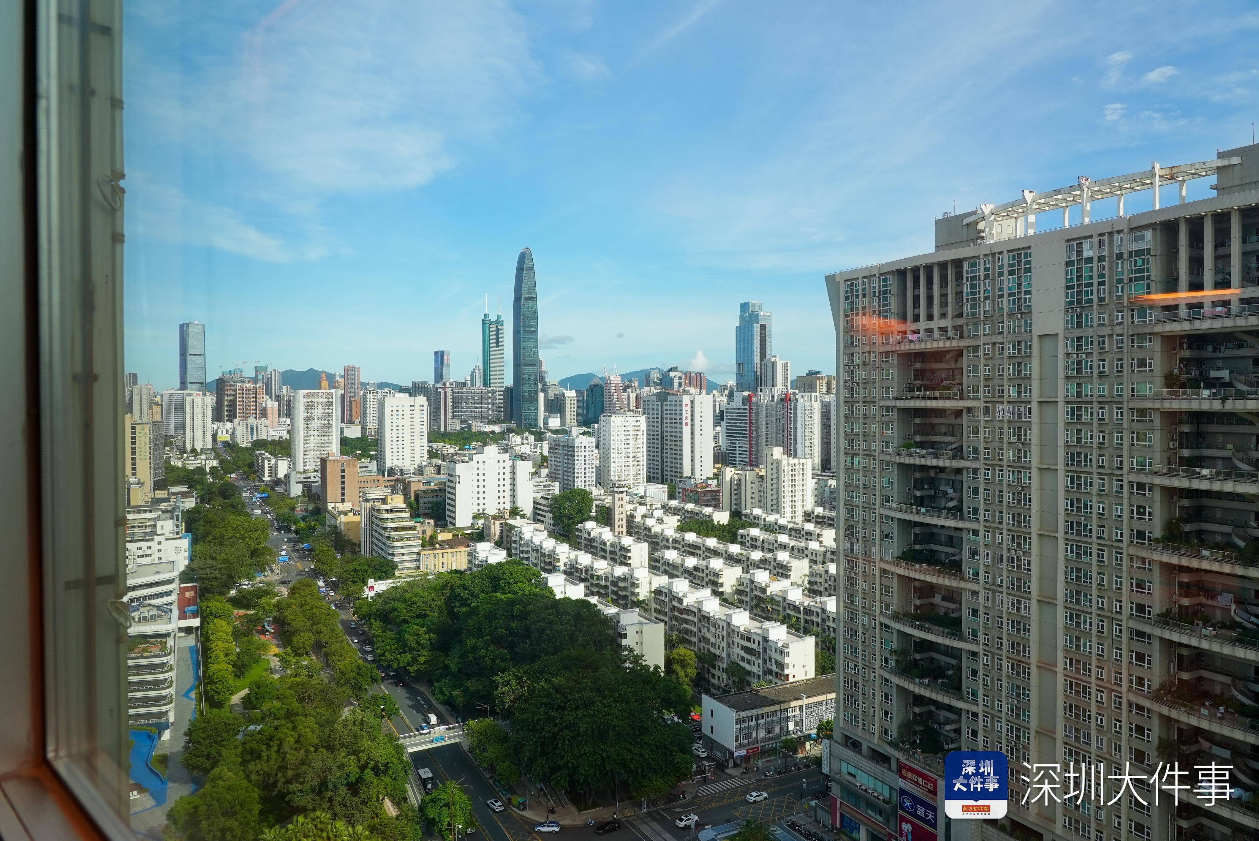 从城际酒店客房推窗而望,街对面是繁华的华强北商圈,不远处是深圳市体育中心新馆。